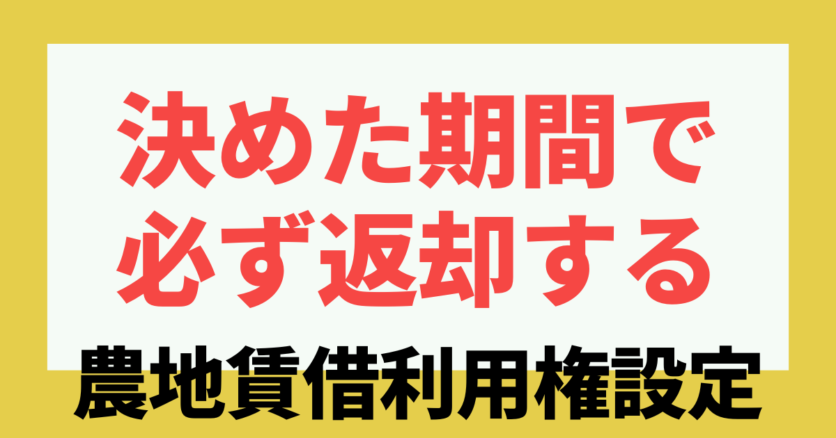 利用権設定とは、貸し手と借り手とが決めた期間が到来すると、賃貸借関係は終了して、必ず返してもらえるという制度です。